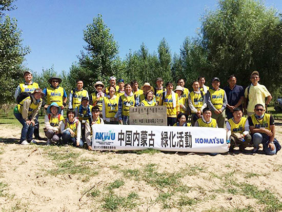 自2005年起,小松開始捐款資助非營利組織在中國內(nèi)蒙古科爾沁地區(qū)開展的沙漠綠化活動。2009年后,小松日本總公司和小松中國集團(tuán)各公司開始組織員工作為志愿者共同赴當(dāng)?shù)貐⒓又矘浠顒印?024年開始,小松中國與中國綠化基金會合作,攜手在內(nèi)蒙古阿拉善地區(qū)支持沙漠綠化項(xiàng)目。經(jīng)過十幾年的持續(xù)努力,已累計植樹超過43萬棵,存活率達(dá)71%。